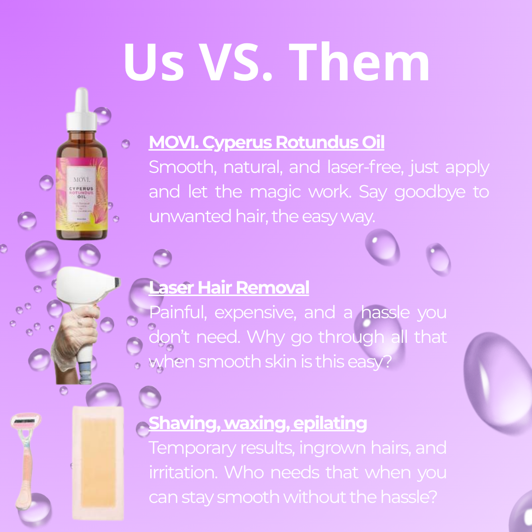 When a product works this well, imitators pop up everywhere. MOVI. is crafted with pure Cyperus rotundus and medical grade ingredients so you know exactly what touches your skin.
