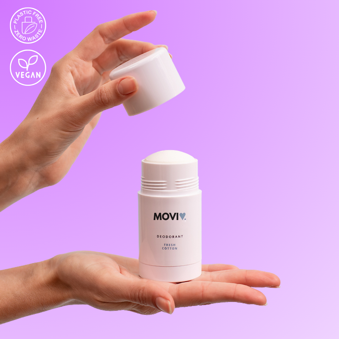 MOVI. is not an antiperspirant, because we do not use aluminium salts in our deodorant. We believe that sweating has a natural and important function. Instead, our deodorant contains alternative ingredients, such as tapioca starch, which absorbs moisture and keeps you dry all day long.